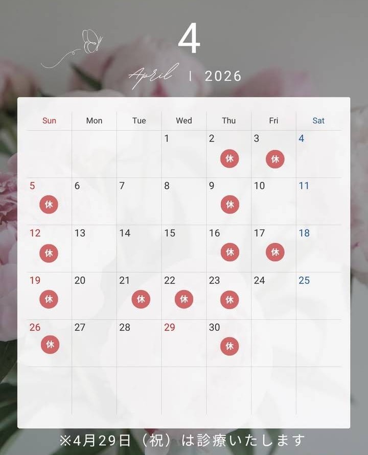 なお、4/29(金・祝)と5/1(日)は診療させて頂きますので、宜しくお願い申し上げます。